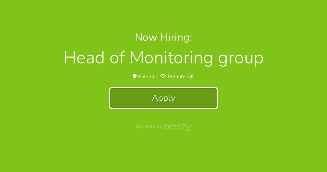 We are looking for a Head of IT Monitoring Team to lead two teams—24/7 Duty Admins (L1) and Technical Monitoring Specialists—and to design, develop, implement, and operate a comprehensive monitoring service that ensures stability, performance, and security of our IT infrastructure and products.