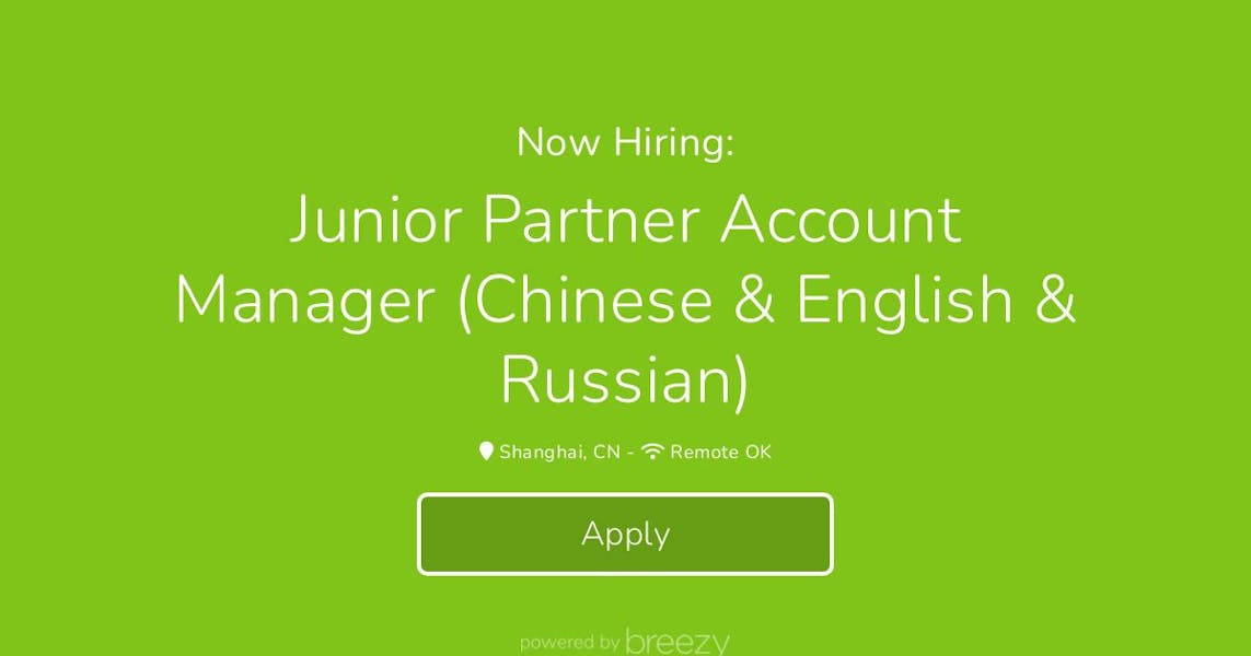 We are looking for a Junior Partner Account Manager (fluent in Chinese, Russian, and English speaking ) to join our team.